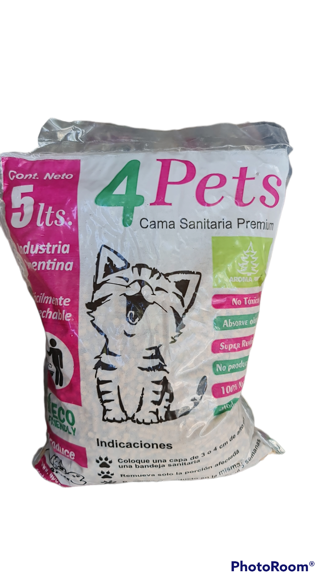 Pellet de madera de pino perfumados. Bolsón x 5 unidades de 5 dm3 cada bolsa.