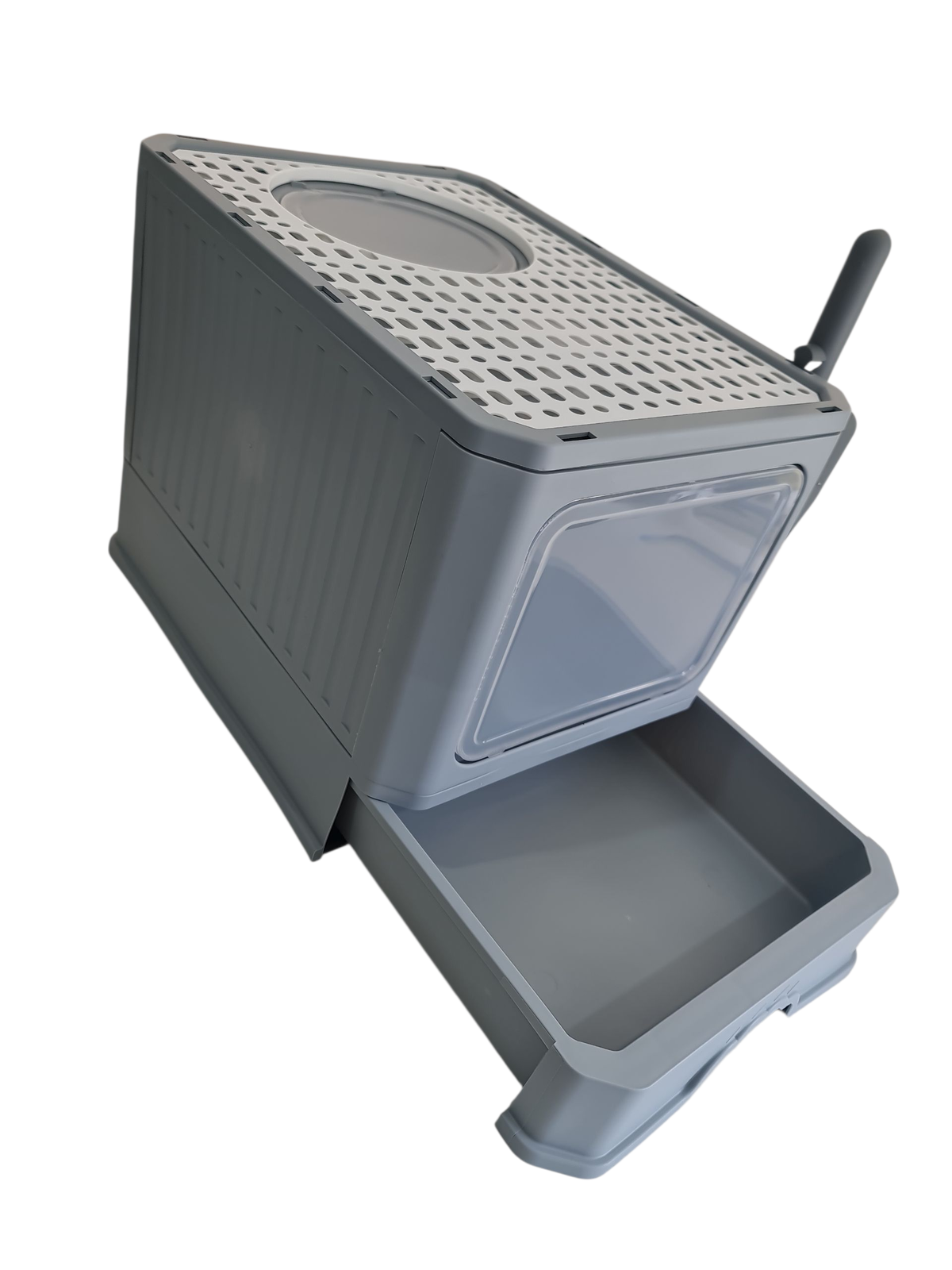 Su tamaño grande permite que gatos de diversas razas y tamaños se sientan a gusto, ofreciendo un entorno privado que respeta su naturaleza. Además, incluye una pala, lo que brinda mayor comodidad al momento de la limpieza y mantenimiento del espacio.