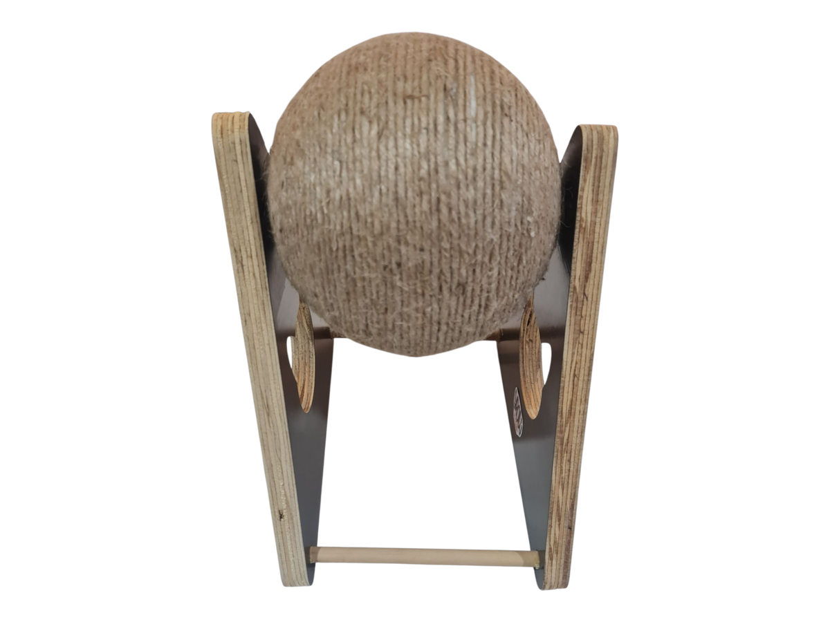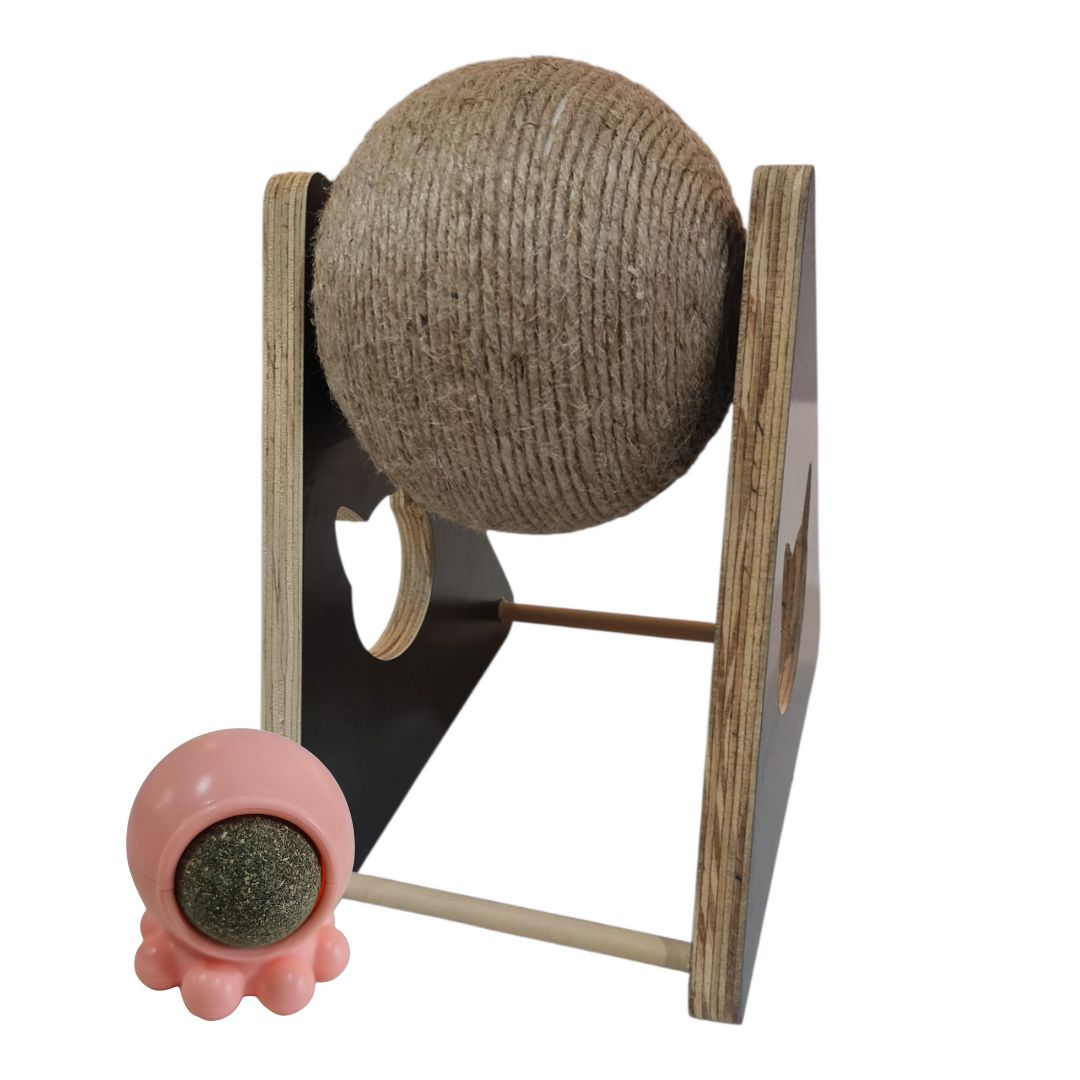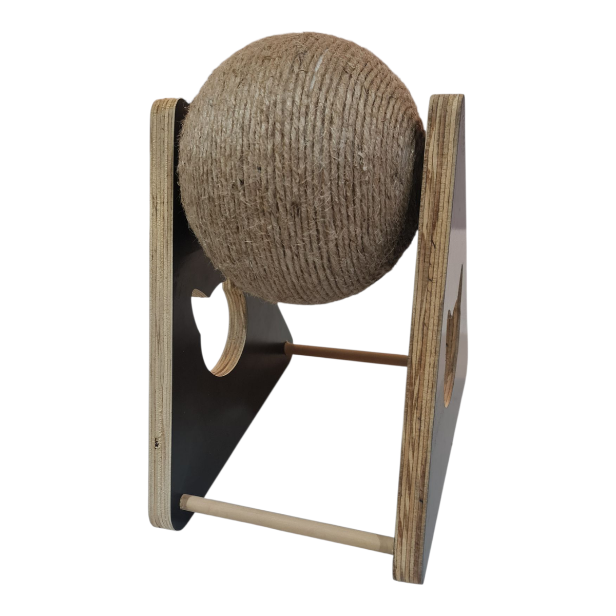 Con una estructura robusta de madera, cuenta con una bola de yute que invita a tu felino a rasguñarla y jugar. La bola está diseñada para estimular el instinto natural de rascado de los gatos, ayudando a mantener sus uñas sanas y evitando que rasquen tus muebles.