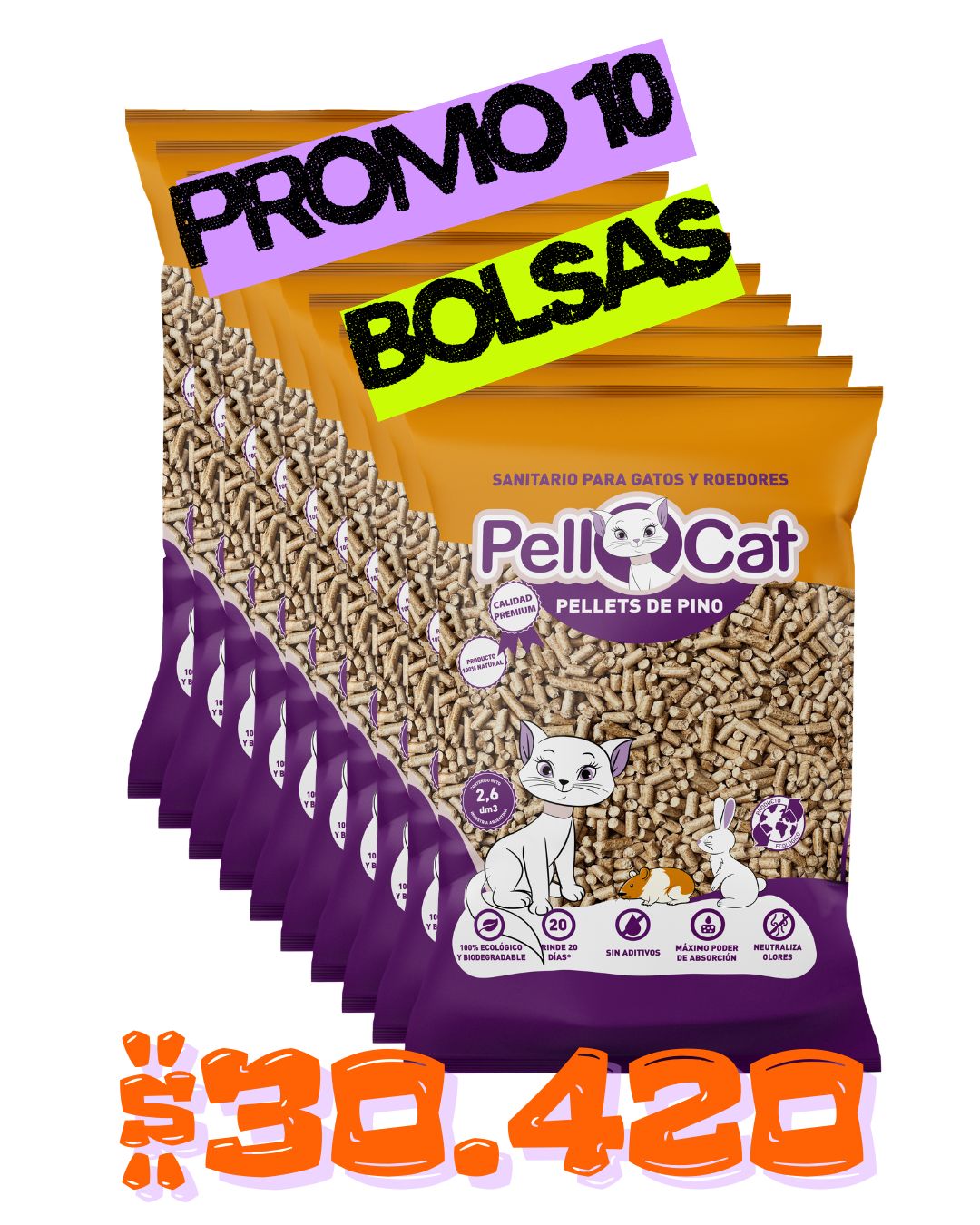 Pellcat x 10 unidades. 2 bolsones de 5 ud c/u